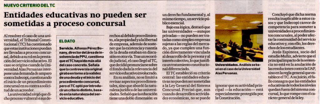 Entidades educativas no pueden ser sometidas a proceso concursal